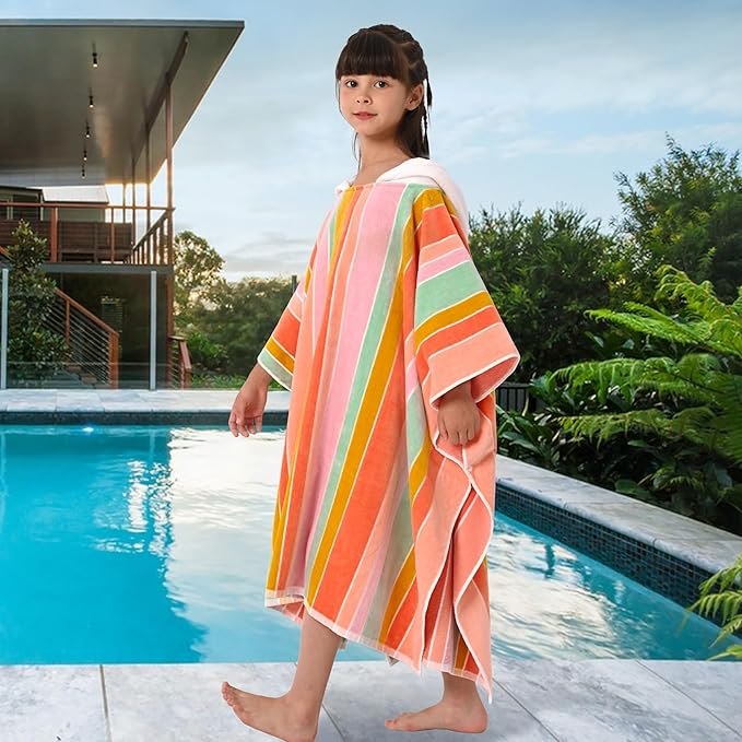 - 100% Cotton:Hooded Poncho Towel is Made of 100% soft cotton, Experience ultimate softness and comfort with our pure cotton poncho, Its gentle touch and plush texture provide a soothing and cozy sensation after swimming or bathing