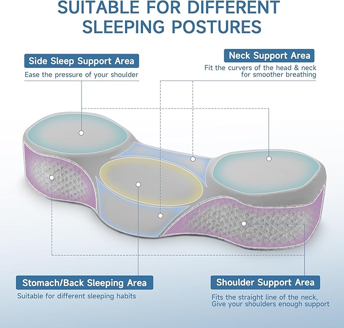 - ERGONOMIC NECK SUPPORT: Made from 100% whole piece soft memory foam, our cervical neck pillow features an ergonomic contour and various height designs to provide optimal neck support. It is specifically designed for back, stomach and side sleepers
