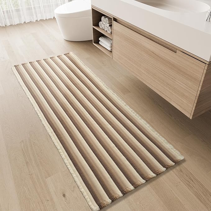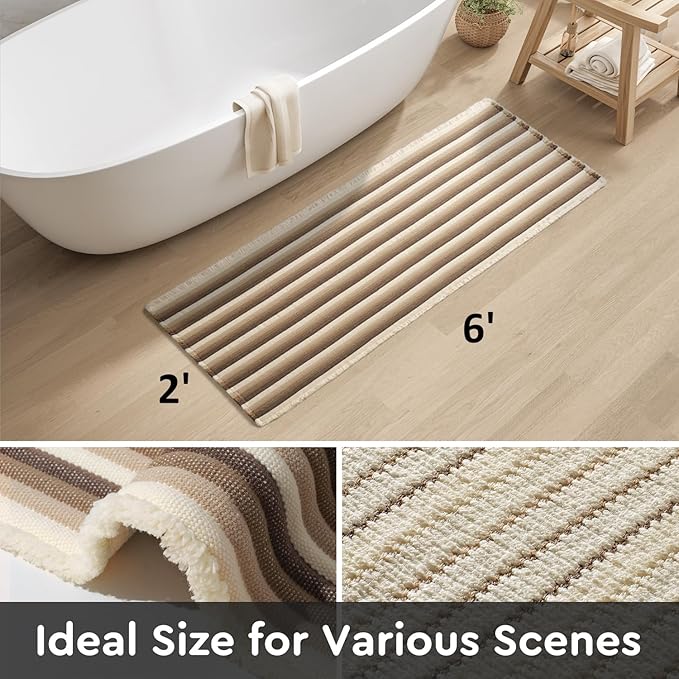 Striped Bath Mat Runner Rug, Super Absorbent Non Slip Bathroom Runner Rug 3D Woven Gradient Washable Runners for Hallways Entryway Bedroom Laundry Room Kitchen Sink, 2' x 6'