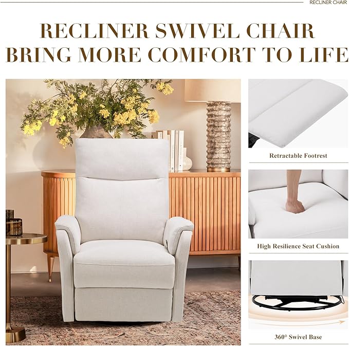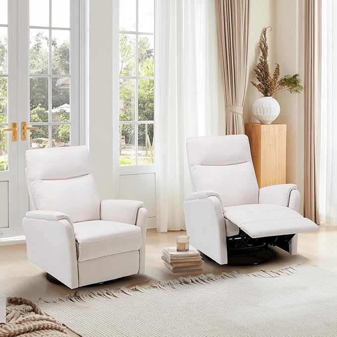 - ⏩Multi-functional Swivel Rocking Cahir--Our Glider Rocker Recliner Chair combines the smooth gliding motion with a convenient reclining feature, offering versatility for relaxation. The swivel recliner glider chair has 360° swivel, 30° rocking, and 90°-150° reclining function, with it you can have the enjoyment of multiple chairs which have different functions