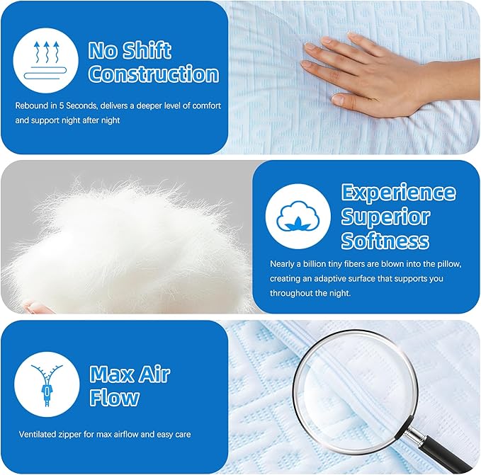 - Fresh, Hypoallergenic Fill: Proprietary blend of medium-soft down alternative and gel for a comfortable plush feel—temperature regulating and soft, but still supportive, a great option for allergy sufferers