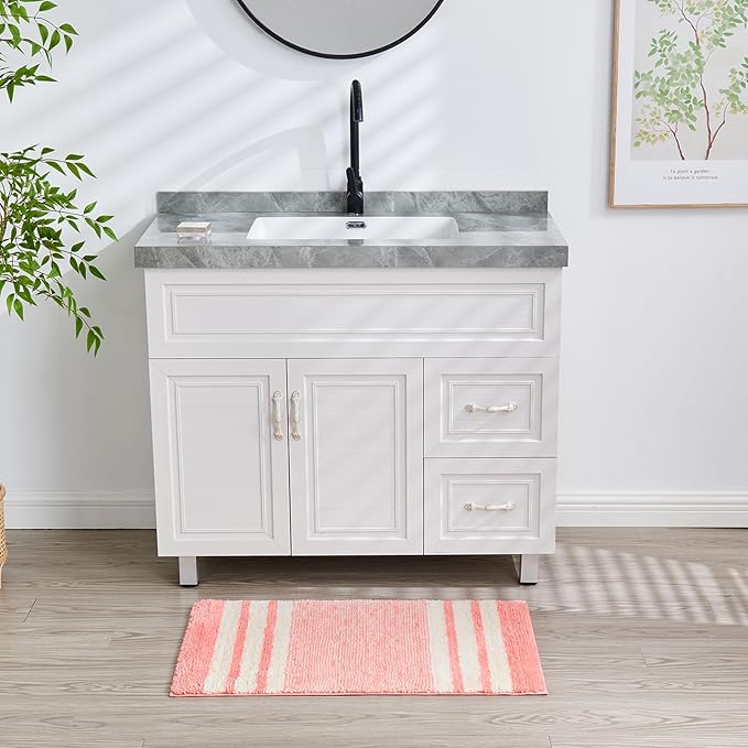 CozeCube Pink Striped Bath mats for Bathroom Non Slip, Fluffy Absorbent Microfiber Bath mat Washable, Aesthetic Bathroom Rugs, Cute Bath mat for Sink, 24" x 16"