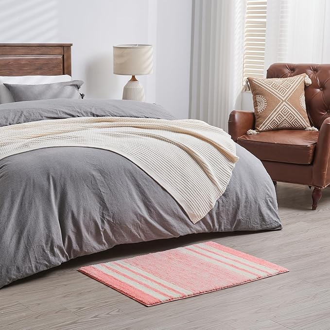 CozeCube Pink Striped Bath mats for Bathroom Non Slip, Fluffy Absorbent Microfiber Bath mat Washable, Aesthetic Bathroom Rugs, Cute Bath mat for Sink, 20" x 32"