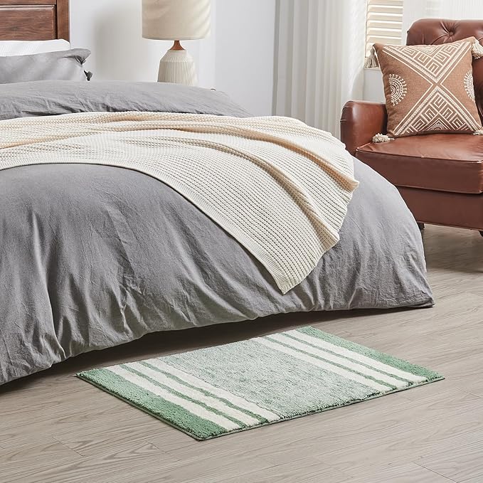 CozeCube Sage Green Striped Bath mats for Bathroom Non Slip, Fluffy Absorbent Microfiber Bath mat Washable, Aesthetic Bathroom Rugs, Cute Bath mat for Sink, 20" x 32"