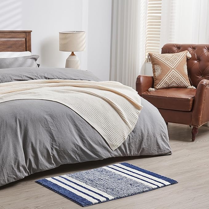 CozeCube Blue Striped Bath mats for Bathroom Non Slip, Fluffy Absorbent Microfiber Bath mat Washable, Aesthetic Bathroom Rugs, Cute Bath mat for Sink, 24" x 16"