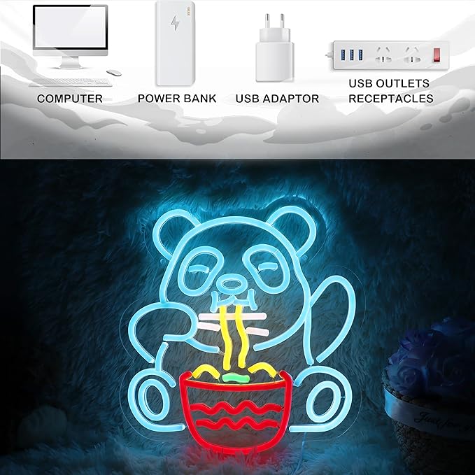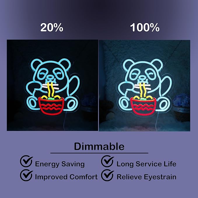 Panda Eating Noodles Neon Sign Panda Ramen Sign for Room Wall Decor Dimmable LED Neon Light for Bar Restaurant Music Concert Man Cave Game Room Wall Art 11.6"×12.4"
