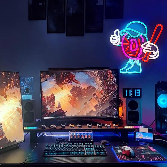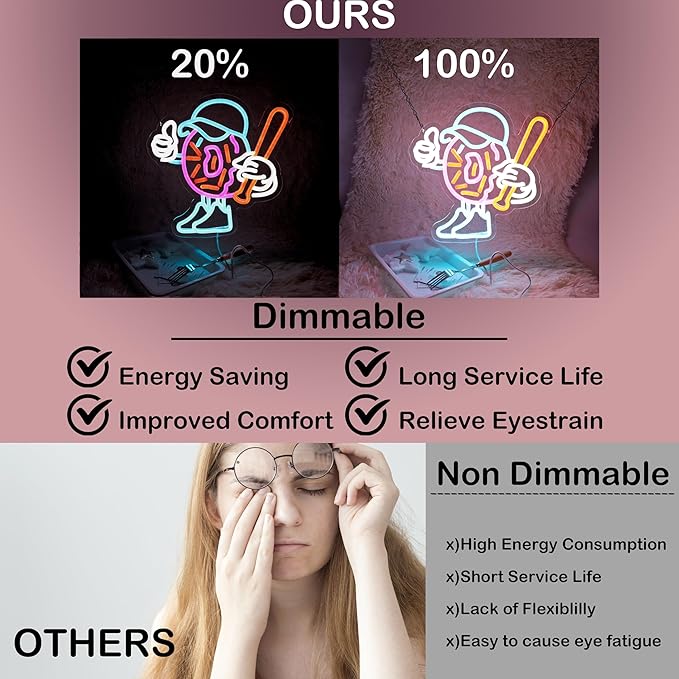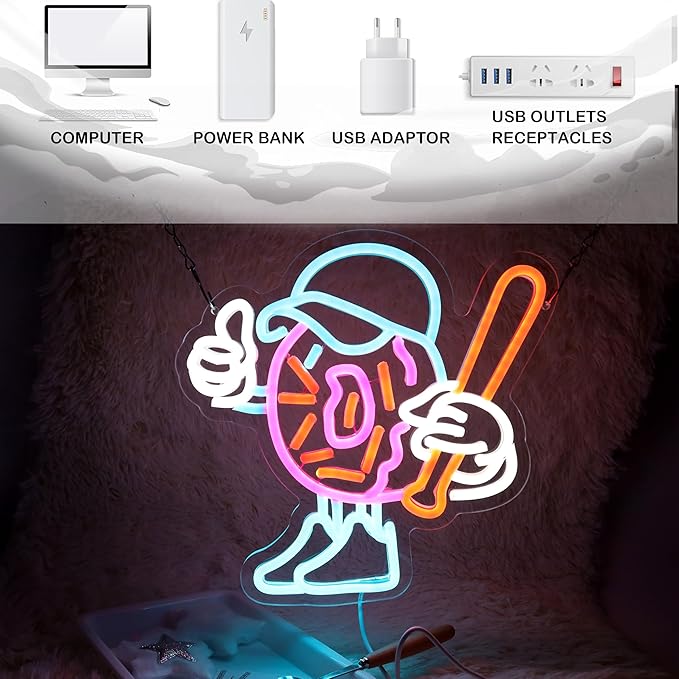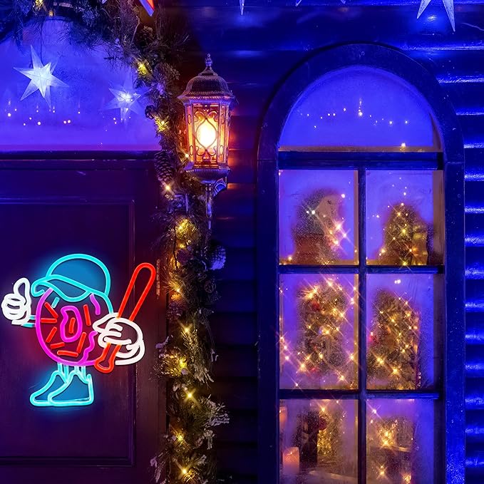 Donut Baseball Neon Sign Base Ball Donut Neon Light Donut LED Neon Sign for Sport Fan Club Wall Decor Dimmable LED Neon Light for Bar Restaurant Music Concert Man Cave Game Room Wall Art 11.8"×11.8"