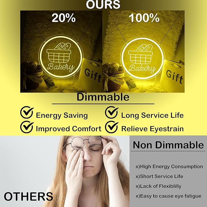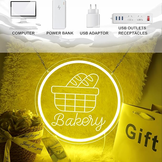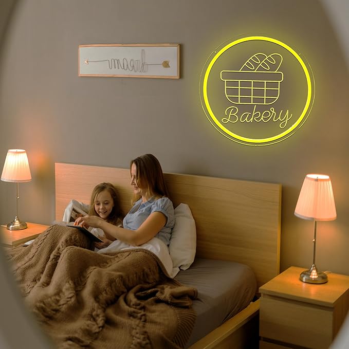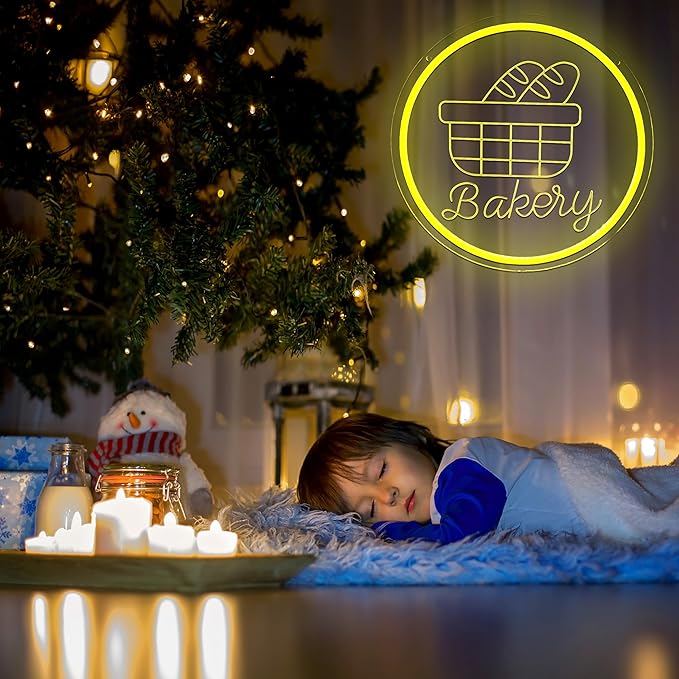 Bakery Neon Sign Bread and Baguette Bakery Neon Light Bakery LED Neon Sign for Bread shop Wall Décor Dimmable LED Neon Light for Bar Restaurant Music Concert Man Cave Game Room Wall Art 12.6"×12.6"