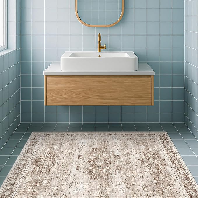 - Tribal Distressed Elegance: Elevate your interior with our cream bathroom rug, showcasing beige and latte shades enriched with timeless tribal patterns. It’s perfect for creating a focal point in any room.