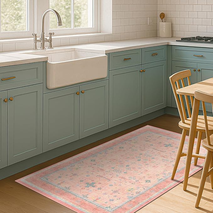 - Machine Washable: Keep your rug fresh with ease! Simply vacuum regularly, or for a deeper clean, toss it in the machine. Ideal as a pink nursery rug, boho kitchen rug, throw rugs for entryway or living room rug. Durable for everyday use.