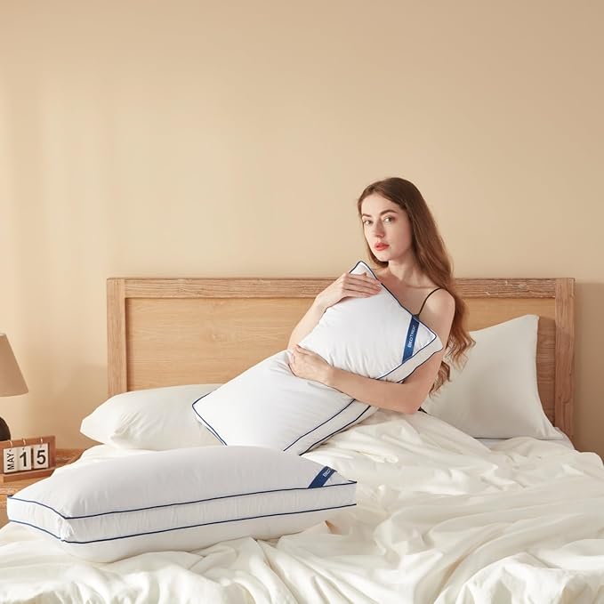 - Unique Design: Feather pillows are designed by professional designers with blue piping and pure white fabrics, which can be perfectly matched with various styles of furniture decoration and have a unique sense of high grade.