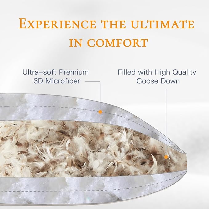 - High Quality Fabric: We use tightly woven high thread count organic cotton fabric, breathable, skin-friendly and soft, while effectively preventing the down and feather fill from leaking or sticking. Perfect for people with sensitive skin, stay cool and fresh all night long.