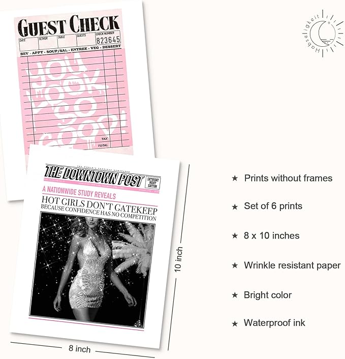 Habseligkeit Pink Fashion Wall Art Prints, Trendy Cute Wall Art Posters for Room Decor Aesthetic, Unique Room Decor for Girls Dorm, Unframed, 8x10in, Set of 6
