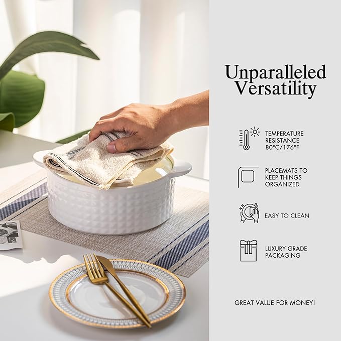 - Protects Your Table: Protect your dining table from scratches, spills, and heat with Onebento placemats. They can withstand temperatures up to 176℉(80℃), ensuring your table stays safe from hot dishes while adding a stylish element to your dining experience. Made of polypropylene plastic, which is a long-lasting material and offers great protection for your table.