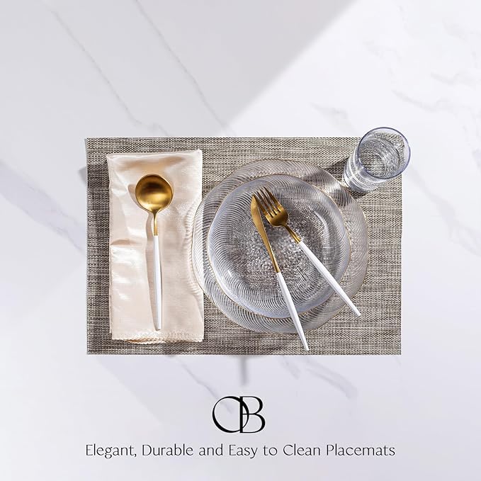 Placemats Set of 12 - Easy Clean Woven Vinyl Placemats for Dining Table, Indoor/Outdoor Place Mats, Washable PVC Table Mats(Cappuccino)