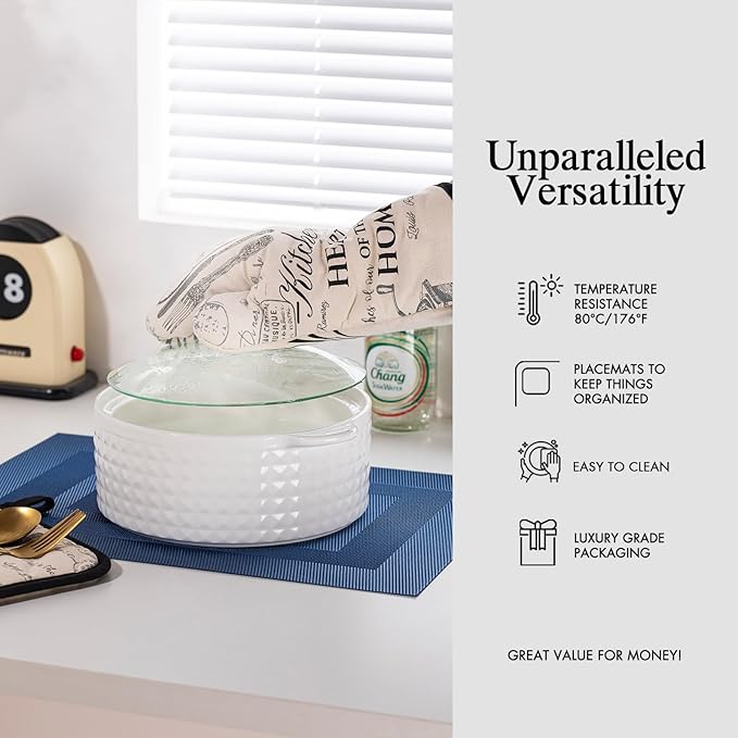 - Protects Your Table: Protect your dining table from scratches, spills, and heat with Onebento placemats. They can withstand temperatures up to 176℉(80℃), ensuring your table stays safe from hot dishes while adding a stylish element to your dining experience. Made of polypropylene plastic, which is a long-lasting material and offers great protection for your table.