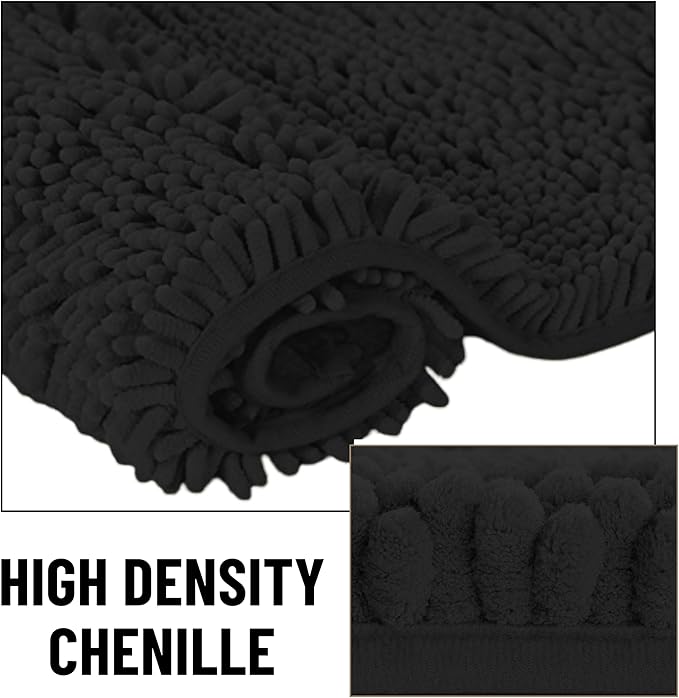 Softstep Premium Luxury Bathroom Rugs 36 x 24, Extra Soft Absorbent Bath Mat, Quick Dry Bath Rugs, Chenille Machine Washable Non-Slip Carpet, Mats For Tub & Shower, Home Decor Accessories, Plush Black