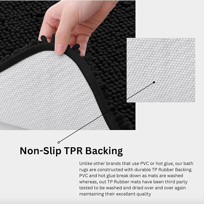 - Premium Ultra-Absorbent Chenille Pile: Made from ultra-soft high density chenille (1800 GSM), our washable bathroom rug absorbs water instantly, keeping your floors dry and safe from slips. Experience luxury with every step with this rug for bathroom that’s designed for superior comfort.