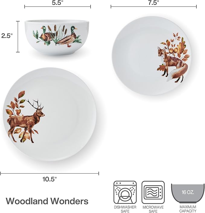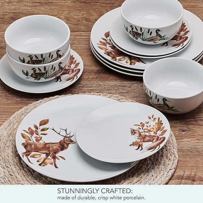 Studio Nova Woodland Wonders Lodge 12 Piece Dinnerware Plate Bowl Set, Service for 4