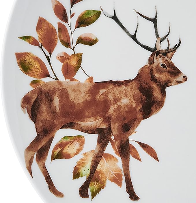 - CELEBRATE NATURE: this striking dinnerware captures the beauty of the wild, with each piece depicting a different forest animal: a deer, ducks, and a fox