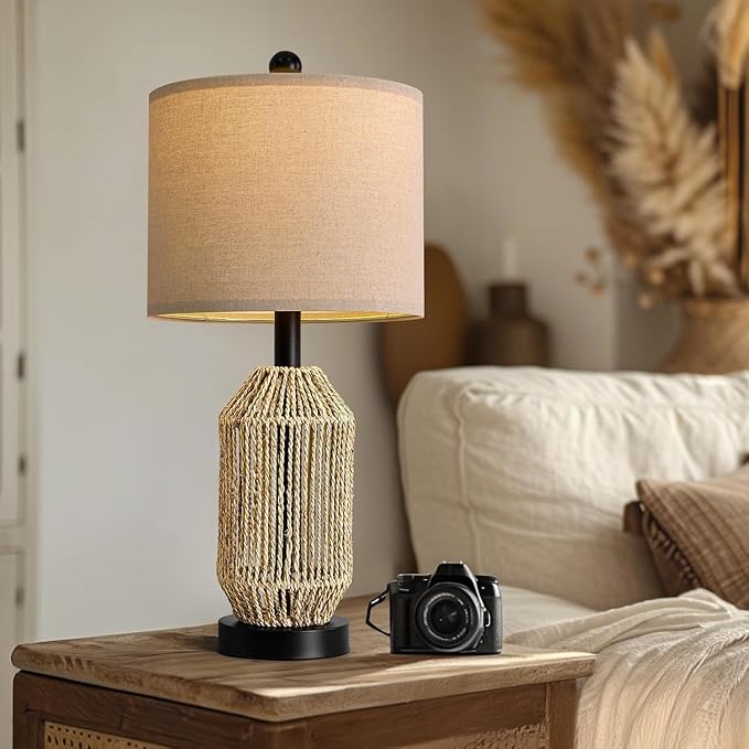 - Vintage farmhouse design: This pair of table lamp for bedroom designs features an antique twine woven body and linen fabric lampshade. The soft, natural brown exterior makes this living room lamp not only look simple and retro, but also create a warm and cozy atmosphere in your room. The farmhouse lamp is very versatile, suitable for a variety of furniture styles.