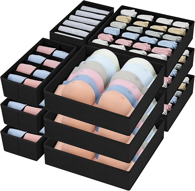 - 【Multiple Sets】Our set includes a large empty storage bins and a 24-grid sock organizer measuring 12.9x12.9x3.5 inches, larger than similar products. Additionally, we offer 8-grid tie organizer and 6-grid underwear organizers measuring 11.8x5.9x3.5 inches. Perfect for any space, like your wardrobe, shelves, drawers and bedroom.