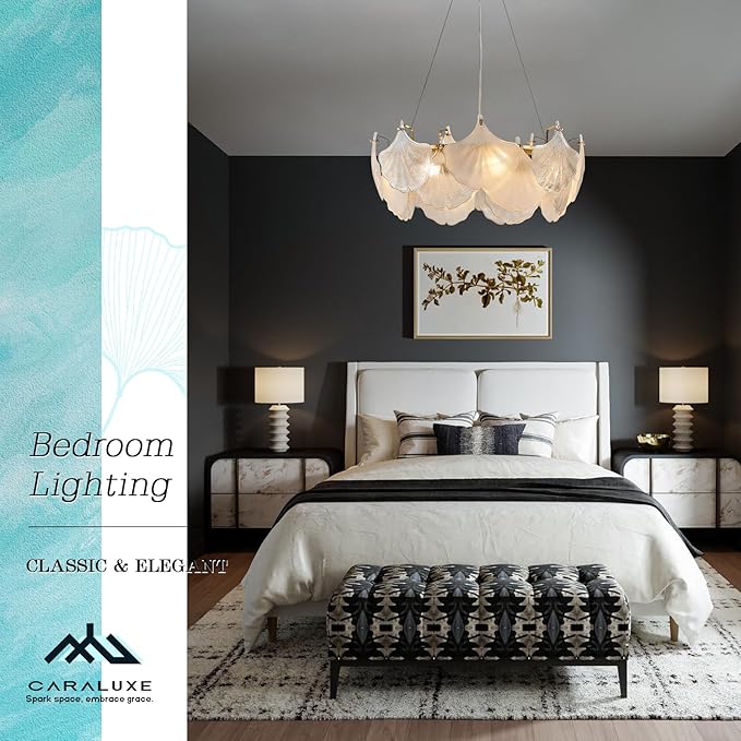 - Round Crystal Chandelier - Caraluxe ginkgo crystal chandelier light fixture with an vintage gold metal frame and exquisite ginkgo glass shades creates a luxury and elegant home vibe. 8 light sockets provide adequate lighting for living room,guest room,dining room,home office,foyer.