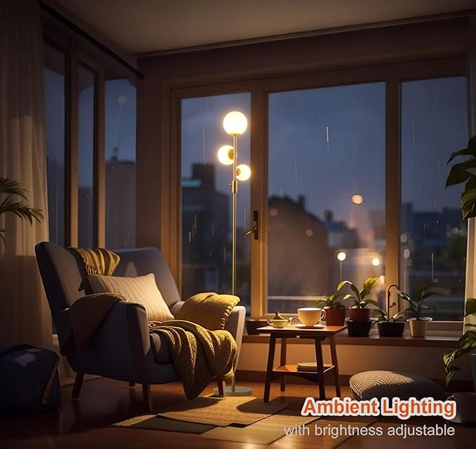 - Enjoy Comfortable, Glare-Free Lighting: Comes with 3 LED bulbs reach total 2400LM for this mid modern floor lamp, meanwhile featuring frosted glass globes, let you experience soft, eye-friendly bright light without harsh glare. You can instantly create a warm and inviting atmosphere in your home, perfect for relaxing evenings or gentle reading light that's easy on everyone's eyes.