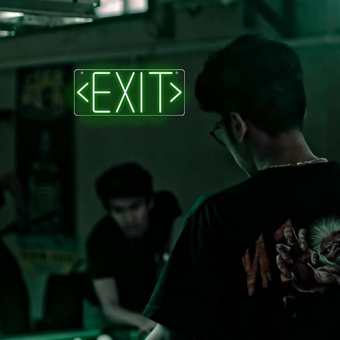 Exit Neon Sign For Business Way Out Led Closed Sign Light, Green Letter Neon Signs For Building Hotel Restaurant Bar Supermarket Mall Museum Coffee Sign For Pizza Store Atm Party Supplies