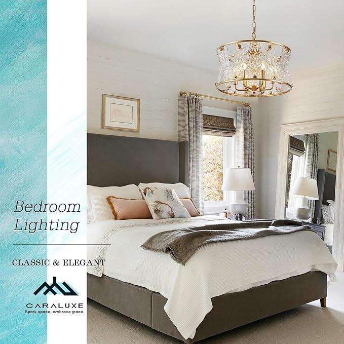 - Gold Entry Chandelier - Caraluxe gold crystal glass chandelier is compatible with E12 bulb(Incandescent, led). BULB NOT INCLUDED. Caraluxe glass drum chandelier light fixture is packed with a full accessories kit and user manual for easy and quick installation.