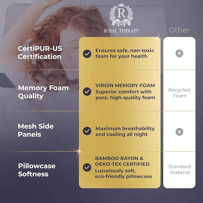 Royal Therapy Memory Foam Pillow, King Pillow Neck Pain Relief, Pillow for Neck and Shoulder Pain, Neck Pain Pillow, Side Sleeper Pillow, Cervical Neck Pillow, Neck Pillow Sleeping