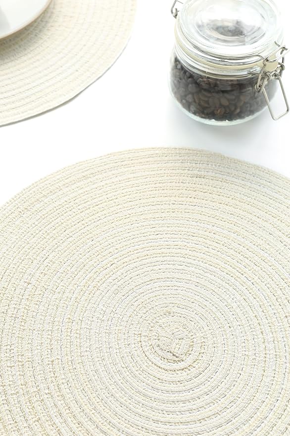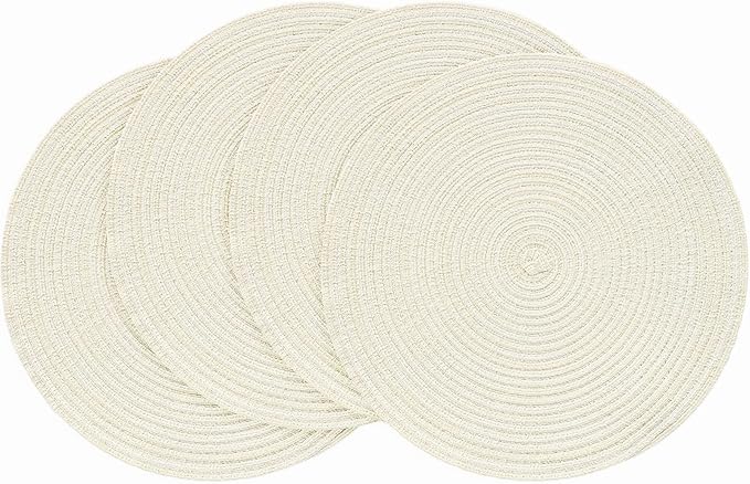 Floroom 15 Inch Round Braided Placemats Set of 4, Washable Heat Resistant Cotton Polyester Circle Place Mats for Kitchen Dining Table - Ivory Cream