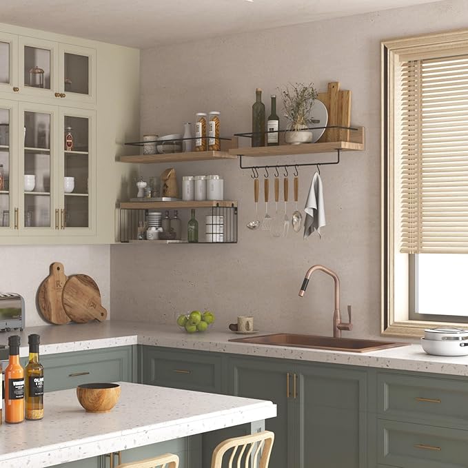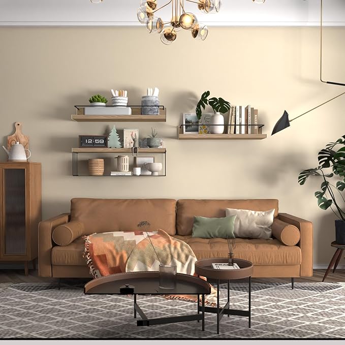 22.5 inches Bathroom Shelves Over Toilet for Wall, Floating Shelves with Storage Basket Paper Holer for Kitchen Living Room, Bedroom & Classroom, Set of 3 (Nature Wood)