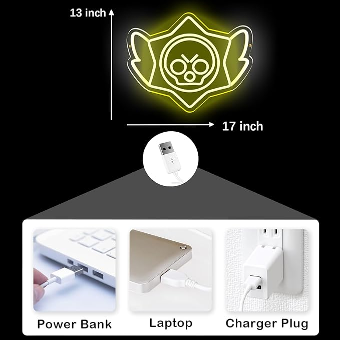 - 【Size & Materials 】The size of neon lights for wall decor is 13*17 inch, and the neon lamp signs are handmade by high -quality backplanes and soft silicone pipes. The package include:1* Gaming neon lights, 1*hanging chain(23 IN), 1*dimming power cord(68 IN)