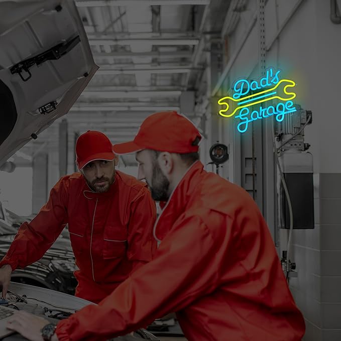 - Great Gift Idea: Looking for a unique gift for the dad or car lover in your life? This Dad's Garage neon sign is the perfect present. It's suitable for birthdays, Father's Day, or any special occasion. It will surely bring a smile to their face and add a personalized touch to their garage or man cave. It's a more memorable gift compared to common items like keychains or coffee mugs.
