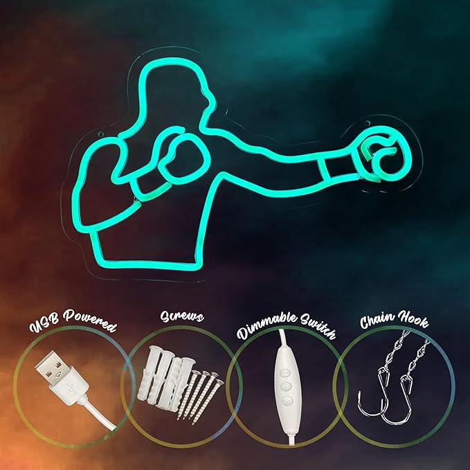 Boxing Neon Signs for Wall Decor,Dimmable LED Neon Light Sign for Home Decor, Bar, Home Gym Decor, Office, Boxing Party Decorations