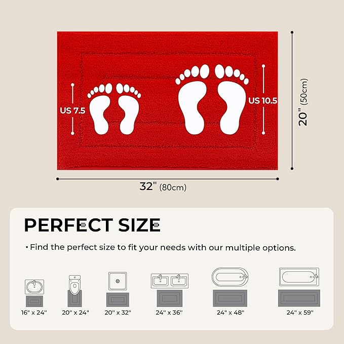 GRANNY SAYS Bathroom Rug, 20" X 32" Bath Rugs for Bathroom, Microfiber Cute Bath Mats, Washable Rug for Bath Tub, Bathroom Mat Non-Slip, Bath Decorations, Red