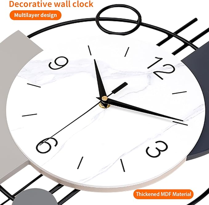 - 【Modern Wall Clock】-The entire wall clock is made of thickened environmentally friendly MDF board and premium metal,harmless and odorless. Piano paint baking process,smooth and delicate,with a high-end texture surface design and the electroplating technology metal outer ring,which is rust proof and scratch resistant.