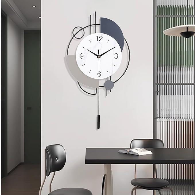 - 【Wall Clock for Decoration】-Metal pointers with a black metal pendulum,combination of dark grey and beige,more elegant and generous.This wall clock features a modern style,highlighting the artistic atmosphere,perfectly matches different home styles,is a scenic line on the wall and high-quality decorations.