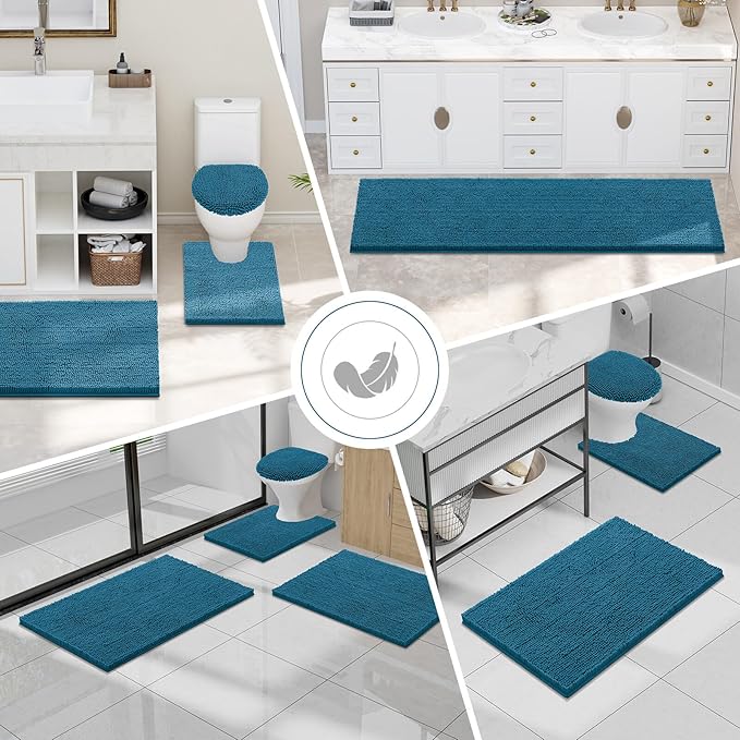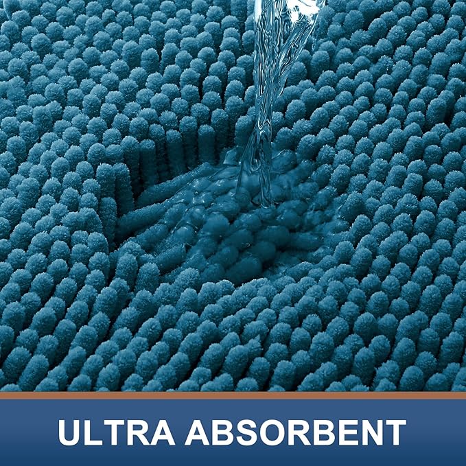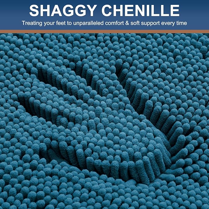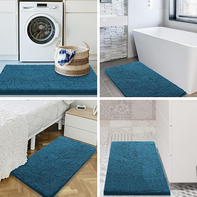 Smiry Luxury Chenille Bathroom Rugs 24x16, Extra Soft and Absorbent Shaggy Bath Mat, Machine Washable, Non-Slip Plush Carpet Runner for Tub, Shower, and Floor, Home Decor Accessories, Peacock Blue