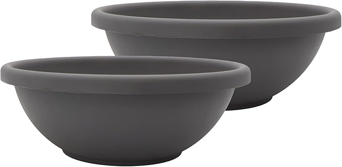 The HC Companies Shallow Planter with Drainage - Contemporary Garden Bowl Planter for Flowers, Herbs & More - Round Succulent Planter Pot for Indoors and Outdoors (15.5" Warm Gray, Pack of 2)