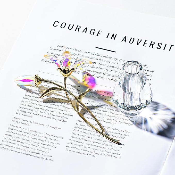 - PREMIUM Crystal Artistry:Crafted from pristine K9 crystal with zero bubbles, flaws, or imperfections. Each petal is meticulously polished by artisans, featuring multi-faceted cuts to amplify light reflection and brilliance. Dimensions: Lily stem – 5.9”x2.9”, Vase – 2.4”x1.6”. Net weight: 143g/set.