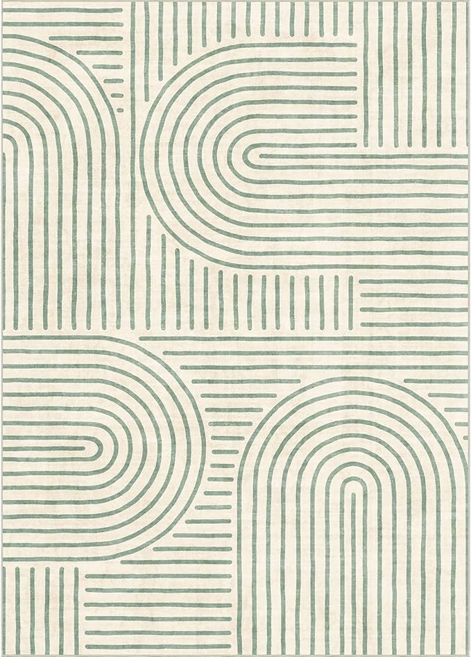 Washable Area Rug 5x7 - Boho Living Room Rug Stain Resistant Soft Indoor Carpet Ultra-Thin Sage Green Modern Abstract Rainbow Rugs for Bedroom Dining Room Nursery Classroom