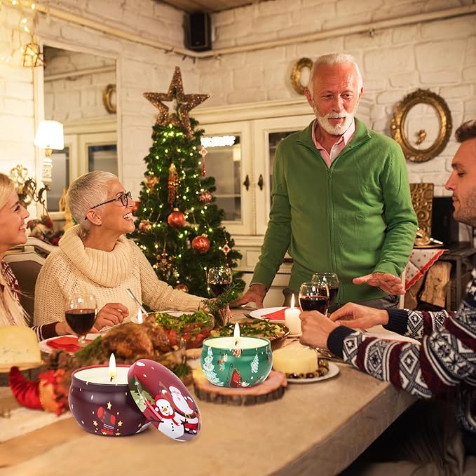 - Christmas Decoration: These Christmas scented candles set in the jar feature 8 beautiful Christmas patterns and can be used as Christmas decorations in every corner of your home. Whether it's the bedroom, living room, bathroom or even yoga room, they can add a festive party atmosphere to your home.