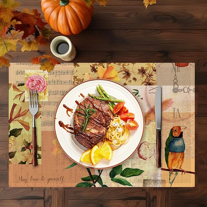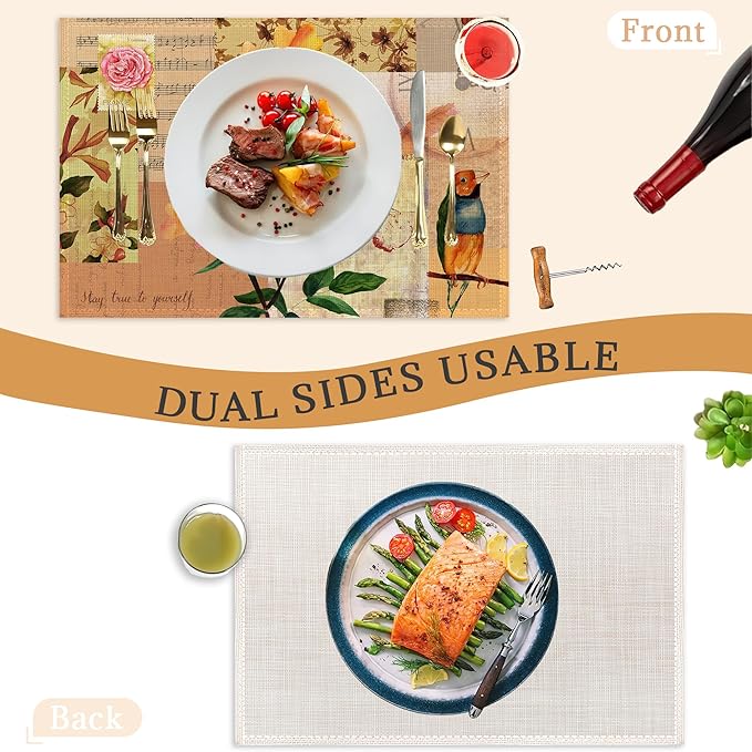 Vintage Roses Placemats Set of 6,Washable Heat Resistant 12×18 Inch Linen Table Mats Summer Flower Place Mats for Party Outdoor Dining Décor