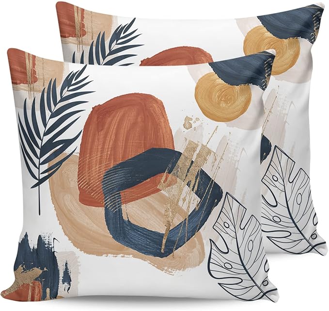 Outdoor Waterproof Throw Pillow Covers Set of 2 Boho Decorative Outdoor Pillows Cushion Case 18x18 Inch Bohemian Patio Pillows for Couch Sofa Bed Garden Office Home Decor Modern Graffiti Leaves