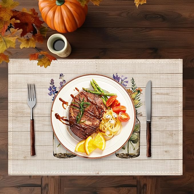 Summer Flowers Placemats Set of 6,Washable Heat Resistant 12×18 Inch Linen Table Mats Fall Floral Place Mats for Party Outdoor Dining Décor