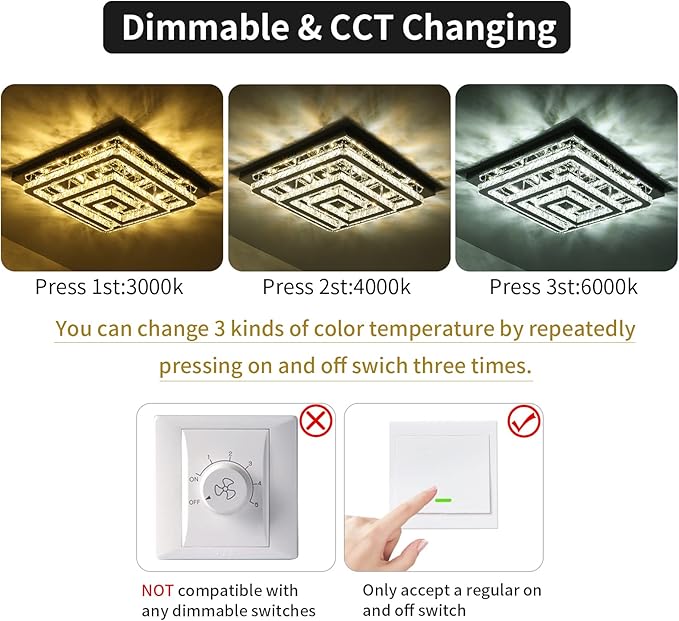 - 【High-Quality Materials】This LED ceiling light fixture were LED chips has already included, high-quality K9 crystals and stainless steel to prevent rust and color fading is easy to maintenance and clean, can help you saving the energy bills.