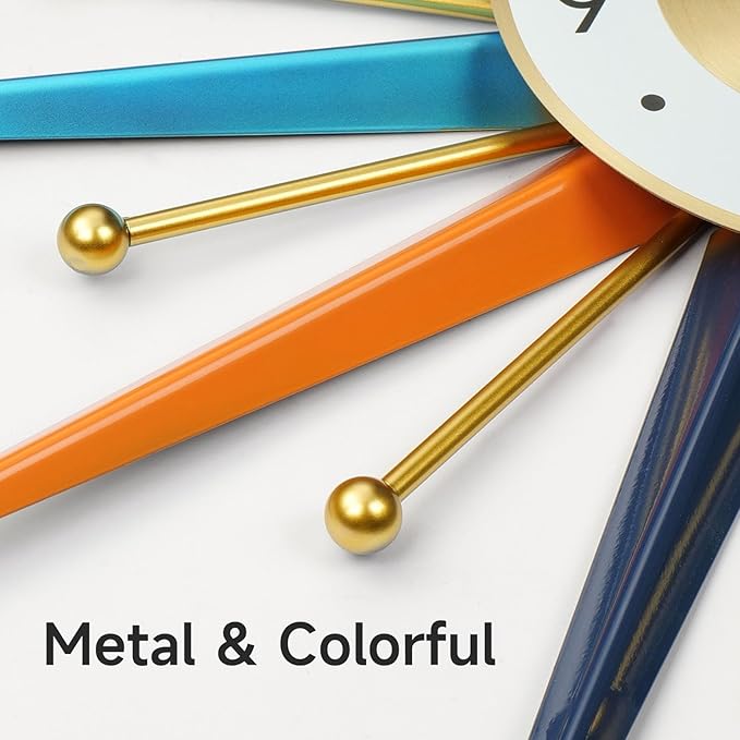 Mid Century Wall Clock, 22 Inch Large Vintage Metal Colorful Starburst Decorative Clocks Battery Operated, Boho Fancy Wall Clock for Kitchen Bedroom Living Room