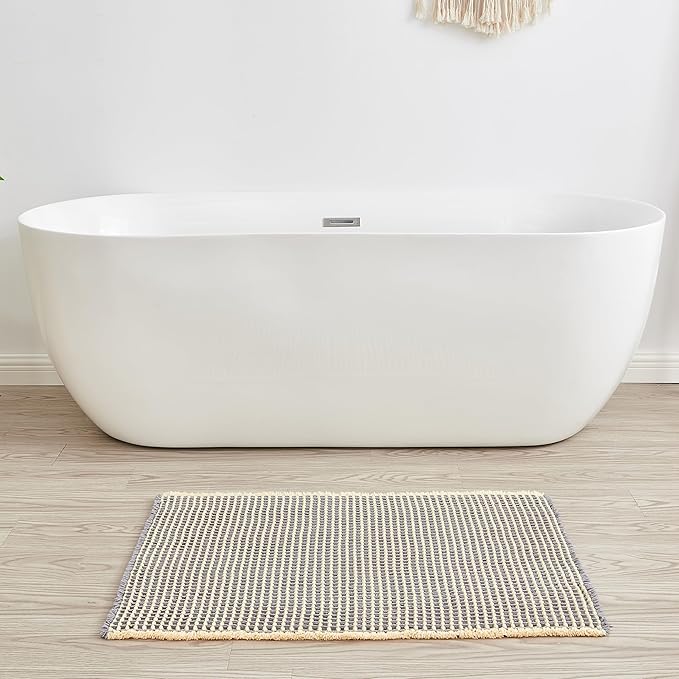 Douceur Waffle Bath mat for Bathroom Floor Non Slip, Super Soft Acrylic Blend Bath Rugs with Tassels, Quick Dry Bathroom Rugs Machine Washable,24" x 36", Grey&Yellow